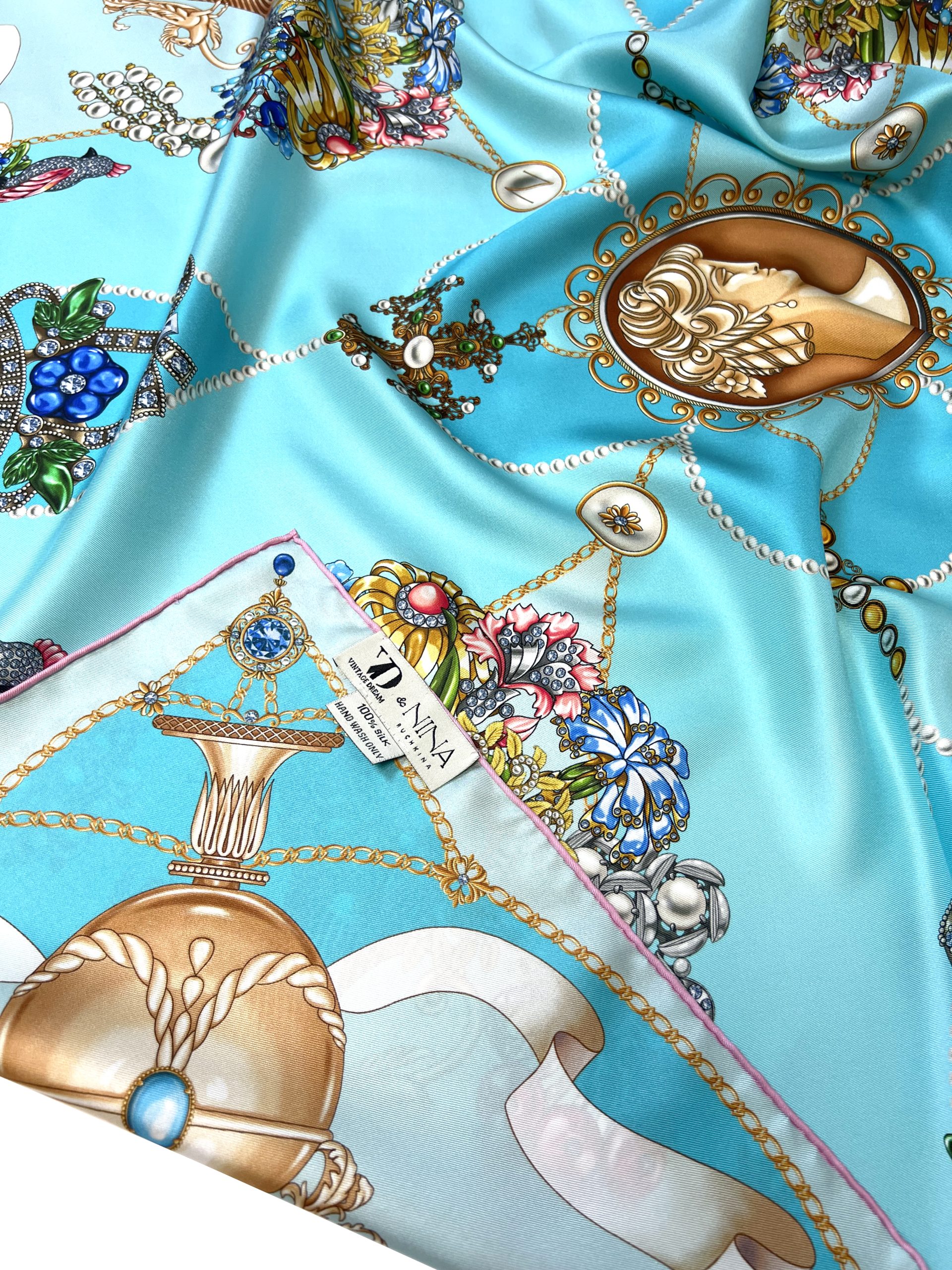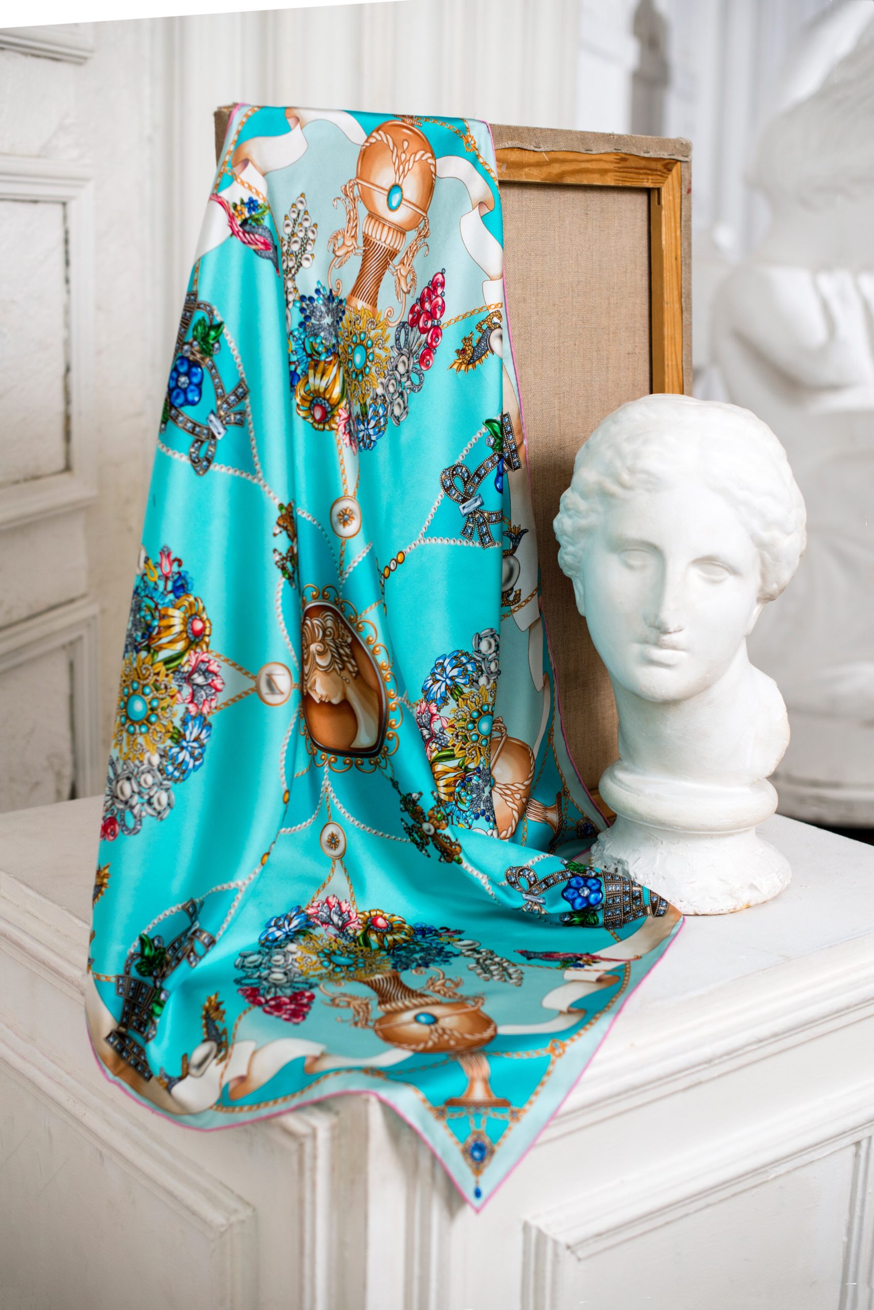 Шёлковый платок «Винтажный гротеск», тиффани