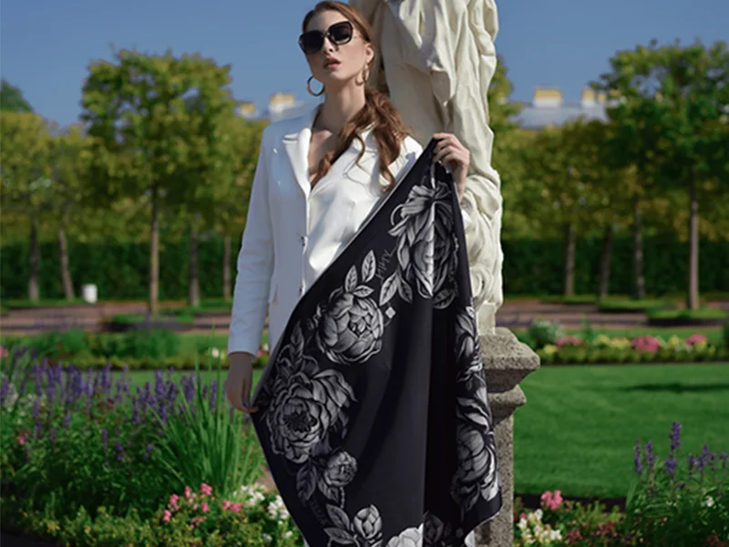 Если вдуматься, цветочные мотивы Valentino и платок Nina Ruchkina «Пионы» принадлежат одной традиции — традиции созерцания. В обоих случаях цветы не изображены, а пережиты. Это не иллюстрация, а внутренний образ. Пионы на платке не копируют природу, они передают её дыхание — густое, насыщенное, почти музыкальное. Линии здесь напоминают мазки кисти, но за каждым мазком чувствуется рука человека, для которого цвет — не просто краска, а состояние сердца.