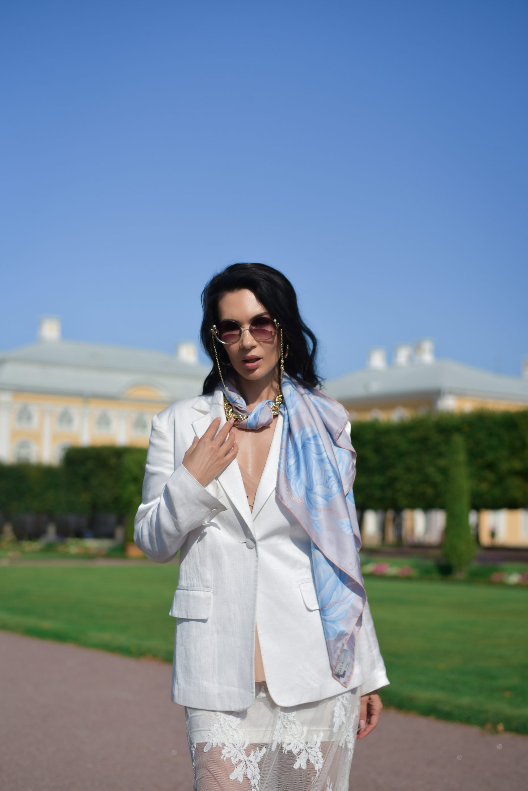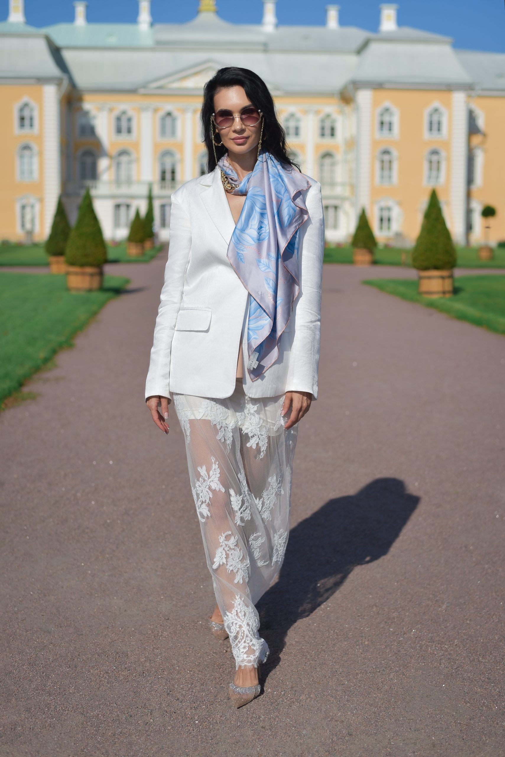 «Пионы» от Rossa & Nina – это запечатленные мгновения безупречной красоты раскрывшихся бутонов. В качестве декоративных элементов платок дополнен изображением нитей жемчуга и контрастным кантом. Выпускается в четырех решениях фона. Голубая дымка окутает вас нежностью, оттенок латте добавит образу элегантности, серая вуаль привнесет французский шик, а контрастный черный станет выразительным акцентом.